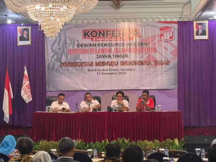 Informasi-Realita.net,Surabaya — H.Baso Juherman terpilih secara aklamasi sebagai Ketua Dewan Pimpinan Daerah (DPD) BARA JP (Barisan Relawan Jalan Perubahan) Jawa Timur dalam Konferensi Daerah (Konferda) yang digelar di Ballroom Hotel Garden Palace lantai 24, Surabaya. Acara ini menjadi momentum penting bagi organisasi untuk memperkuat sinergi dan kolaborasi, sejalan dengan visi Indonesia Emas 2045.