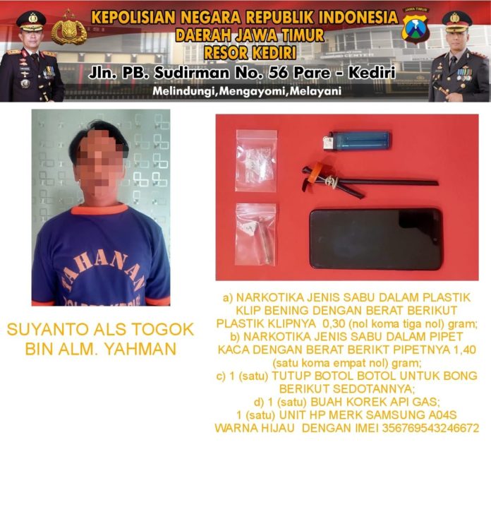 Informasi-realita.net-KEDIRI-Pria asal Kecamatan Pare Kabupaten Kediri ini diamankan diduga edarkan narkotika jenis sabu-sabu.