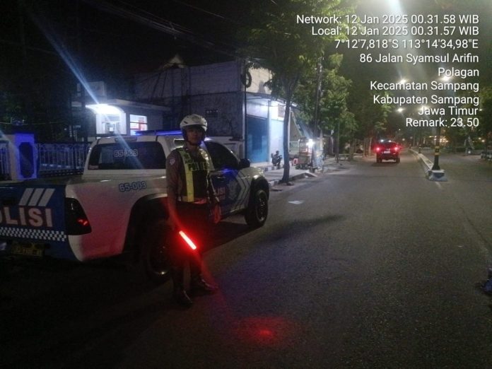 Informasi-Realita.Net, Sampang – Untuk antisipasi terjadinya Balap Liar (Bali) yang dilakukan pemuda pada malam sampai dini hari, anggota Kesatuan Lalu Lintas (Satlantas) Polres Sampang, melakukan giat Patroli malam di Jalan Syamsul Arifin dan Jalan Makboel, Kabupaten Sampang. Sabtu malam (12/1/2025)