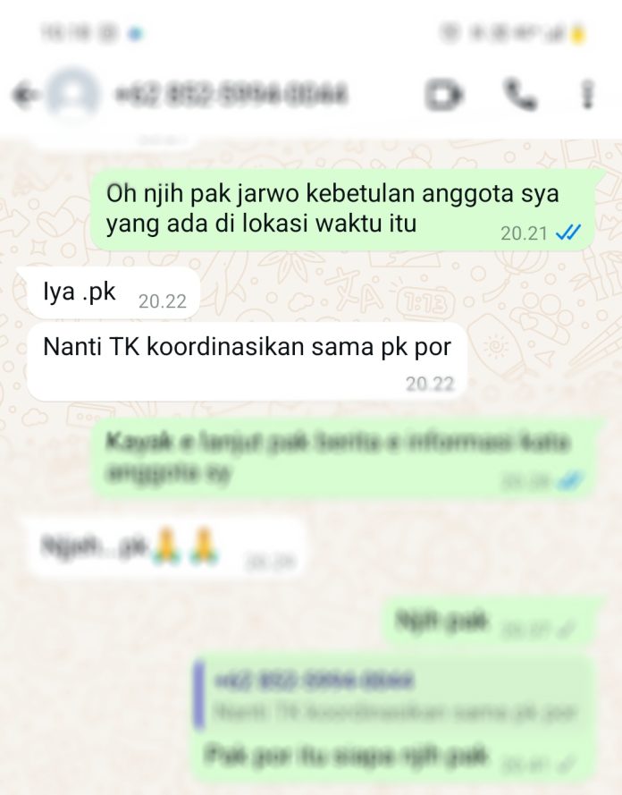 Sekira tanggal (20/01/25) Awak media mendapatkan pesan Whatsapp yang mengaku bernama Jarwo dengan mengatakan, Mas ini pak Jarwo dari Jatikalen, mohon kordinasi untuk Jatikalen.