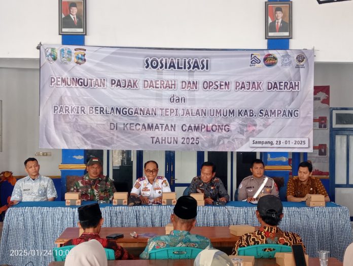 Informasi-Realita.Net, Sampang – Dinas Perhubungan (Dishub) bersama Kepolisian Lalu Lintas (Polantas) Polres Sampang, menggelar sosialisasi pemungutan pajak daerah dan Opsen pajak daerah serta parkir berlangganan tepi jalan umum, di Aula Kantor Kecamatan Camplong, Kabupaten Sampang. Jumat (24 Januari 2025).