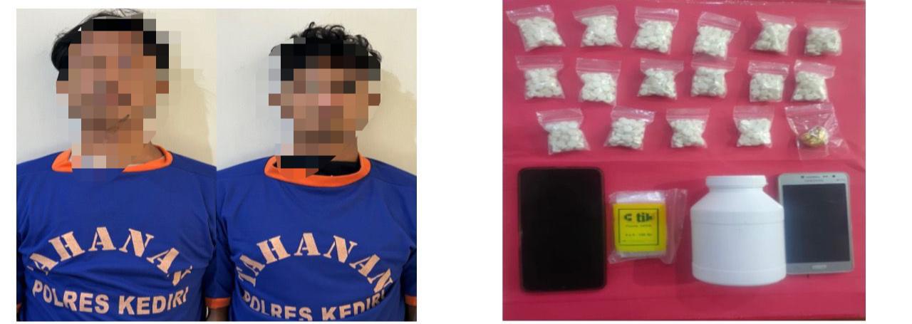 Informasi-realita.net-KEDIRI-Dua pemuda du duga pengedar narkoba sejenis pil dobel L,di tangkap Buser Satresnarkoba Polres Kediri.Kedua pelaku itu masing-masing berinisial MDM (19) warga Kecamatan Gampengrejo dan Y (24) asal Kecamatan Papar Kabupaten Kediri.