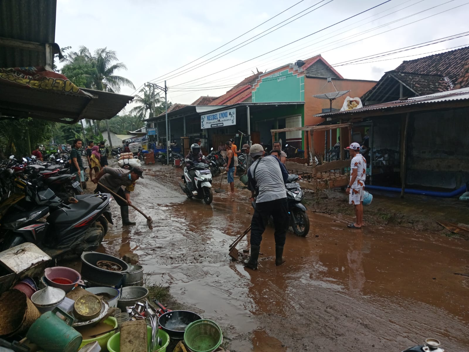 Puluhan anggota membantu penanganan pascabanjir berkolaborasi dengan TNI, BPBD, Tim Tagana dan relawan setempat.