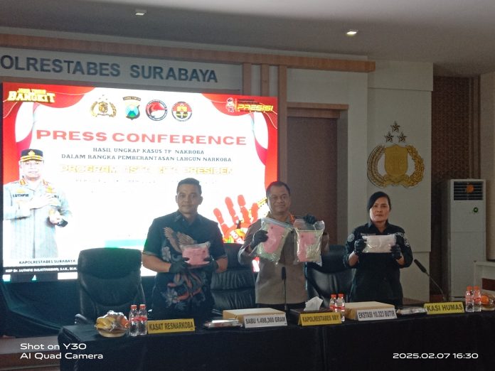 Informasi-realita.net-Surabaya – Polrestabes Surabaya terus menunjukkan komitmennya dalam memberantas peredaran dan penyalahgunaan narkoba. Dalam periode 21 Oktober 2024 hingga 6 Februari 2025, melalui Program Asta Cita, aparat berhasil mengungkap 236 kasus narkotika, dengan total 323 tersangka yang diamankan.