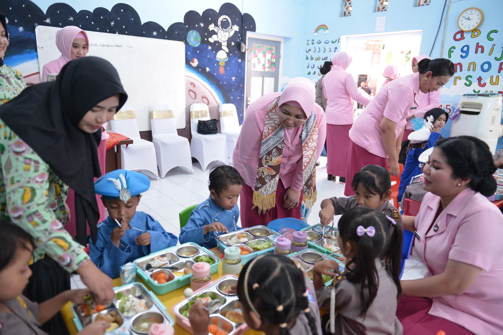 “YKB Daerah Jawa Timur berkomitmen turut mensukseskan program pemerintah yaitu pemberian makan bergizi gratis,” ujar Ny. Ade Imam Sugianto saat berbagi makanan bergizi di TK Kemala Bhayangkari 28 Situbondo.