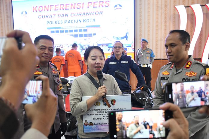 Pasalnya, motor Vario miliknya yang hilang digondol maling, berhasil ditemukan oleh Polres Madiun Kota Polda Jatim.