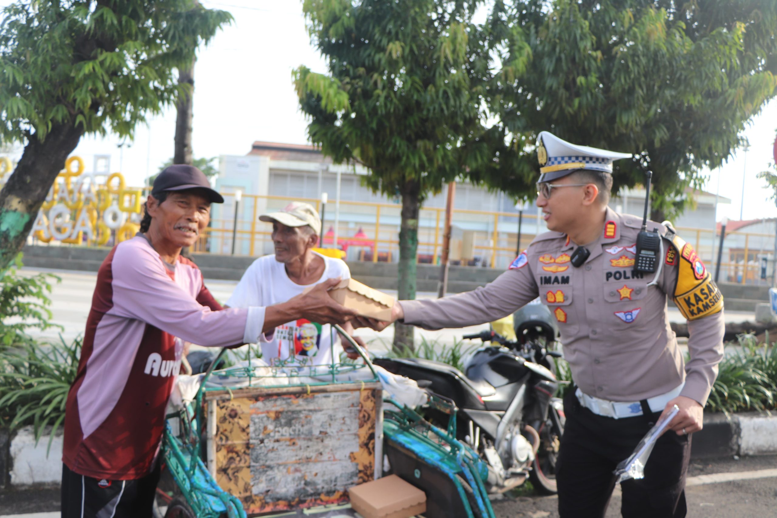 Operasi Keselamatan Semeru di Jumat Berkah Polres Tuban Ajak Masyarakat Tertib Lalin Dengan Berbagi Nasi Kotak