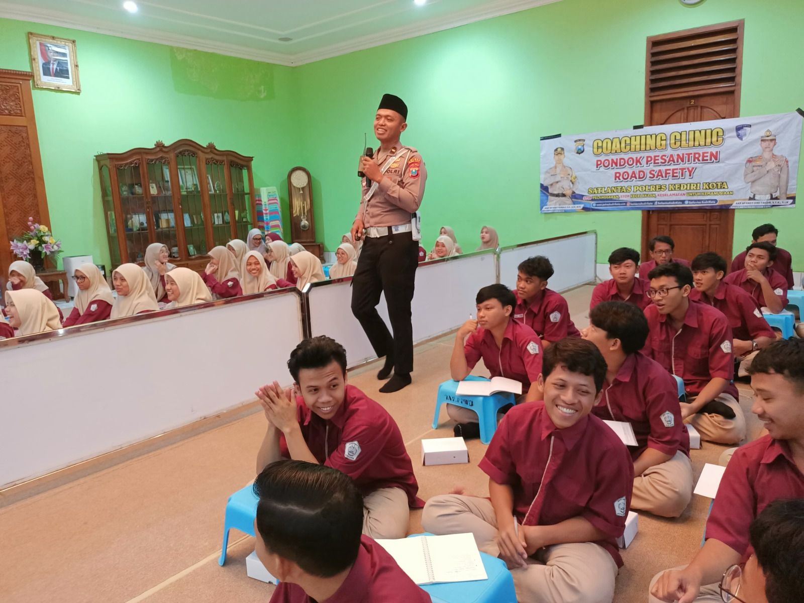 Polreskedirikota – Dalam rangka membentuk generasi muda yang disiplin dan sadar akan pentingnya keselamatan di jalan, Satuan Lalu Lintas Polres Kediri Kota melalui Unit Kamsel bersama Satbinmas menggelar Coaching Clinic bertema Safety Riding dan Etika Berlalu Lintas di Pondok Pesantren Wali Barokah, Rabu (14/5/2025).