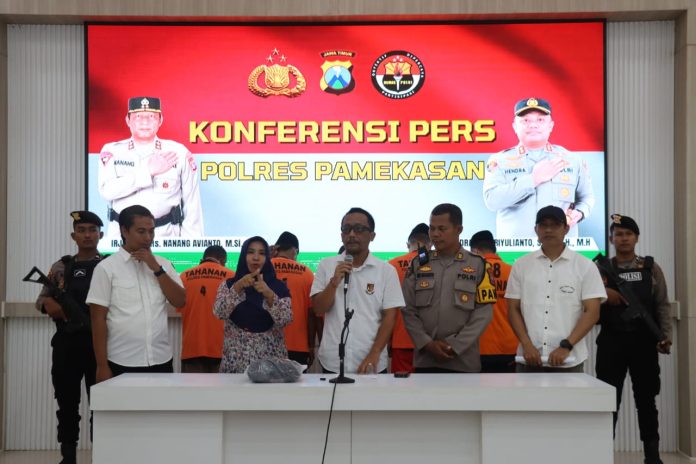 Keterangan Foto: Kasat Reskrim Polres Pamekasan bersama anggotanya dan para tersangka saat jumpa pers.