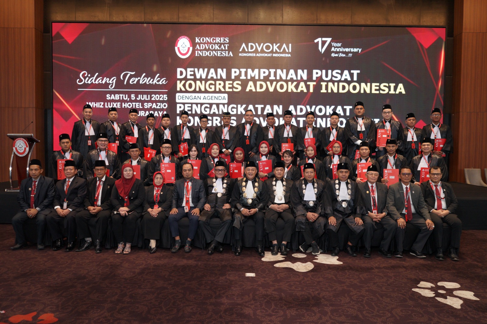 informasi-realita.net,Surabaya – Dewan Pimpinan Pusat Kongres Advokat Indonesia (DPP KAI) kembali mengukuhkan advokat baru melalui Sidang Terbuka dengan agenda Pengangkatan Advokat, yang berlangsung secara khidmat di Whiz Luxe Hotel Spazio Surabaya, Sabtu (5/7/2025).