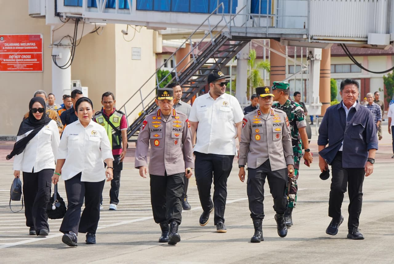 Informasi-Realita.net,OKU Timur – Kapolri beserta Ketua Komisi IV DPR RI, Menko Pangan, Kepala Badan Pangan Nasional, dan Dirut Bulog terpantau tiba di Mahmud Badaruddin II dari Palembang dilanjutkan menaiki helikopter Polri menuju Kab. OKU Timur, Prov. Sumsel pada Sabtu, 27 September 2025.
