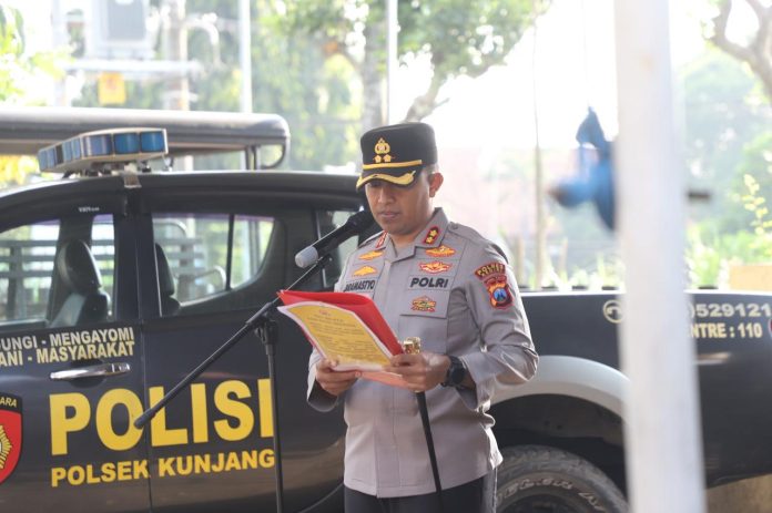 Informasi-realita.net-KEDIRI– Apel pagi di Mapolsek Kunjang pada Selasa (7/10/2025) dipimpin langsung oleh Kapolres Kediri AKBP Bramastyo Priaji, S.H., S.I.K, M.Si.