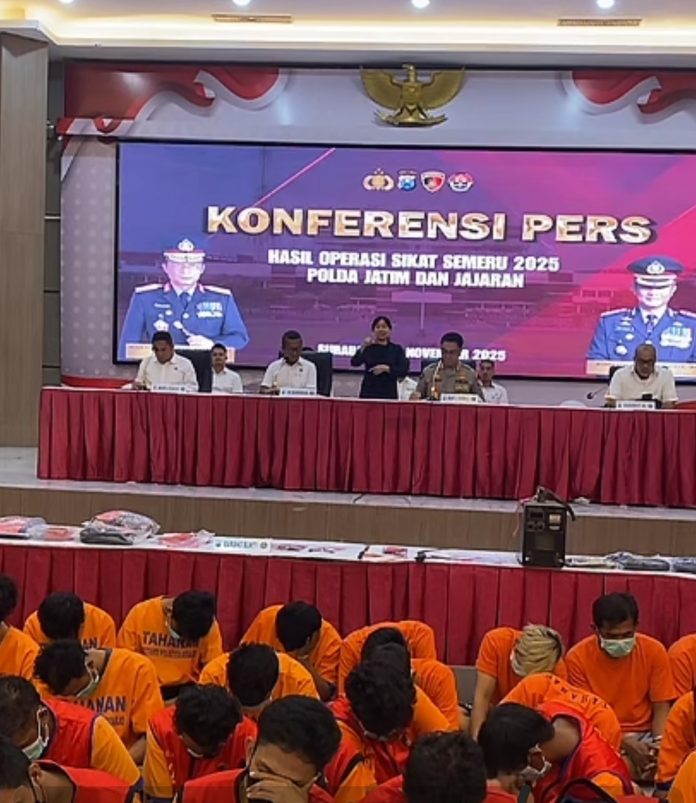 Polda Jatim Pamerkan 1.135 Tersangka dari 1.443 Kasus Kriminal dalam Operasi Sikat Semeru 2025