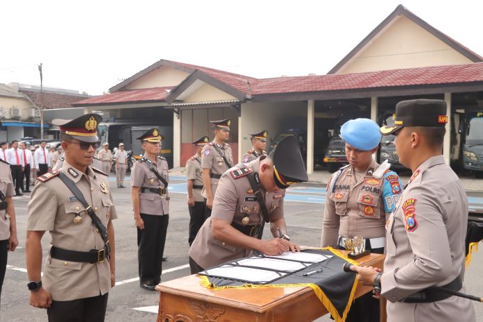 Senin (17/11/2025) pagi, lapangan apel Mapolres Kediri menjadi tempat berlangsungnya upacara serah terima jabatan (sertijab) sejumlah Pejabat Utama dan Kapolsek jajaran, sekaligus pengukuhan Kasatintelkam Polres Kediri.