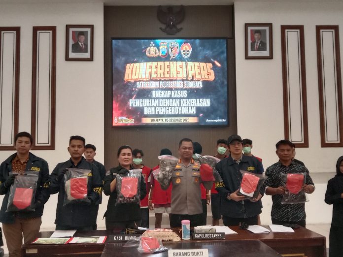 Informasi-realita.net-SURABAYA — Aksi brutal berupa pengeroyokan dan pencurian dengan kekerasan di Surabaya pada Minggu (30/11/2025) akhirnya terungkap. Unit Jatanras Satreskrim Polrestabes Surabaya bergerak cepat membongkar kasus yang menyeret delapan pelaku berusia belasan tahun, mayoritas masih pelajar. Dua korban, seorang pelajar 17 tahun dan pemuda 20 tahun, warga Karah, Jambangan, harus menanggung luka dan trauma mendalam akibat serangan membabi buta tersebut.