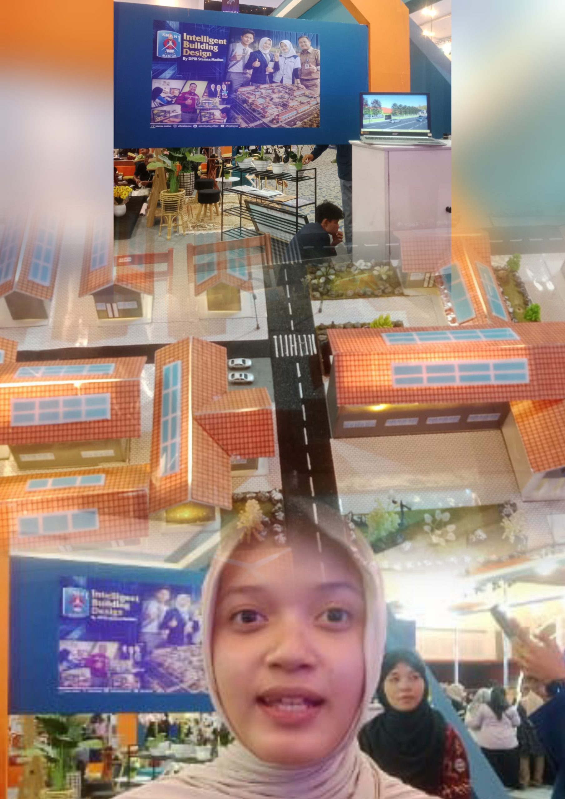 “Inovasi yang kami tampilkan di sini adalah maket bangunan berbasis teknologi. Di dalamnya ada panel surya dan lampu-lampu yang bisa diakses melalui aplikasi yang kami buat sendiri. Aplikasinya hasil kolaborasi antara jurusan konstruksi dan jurusan audio video. Jadi semuanya benar-benar kami kerjakan dari nol sampai siap dipamerkan di sini,” ujar Alya.