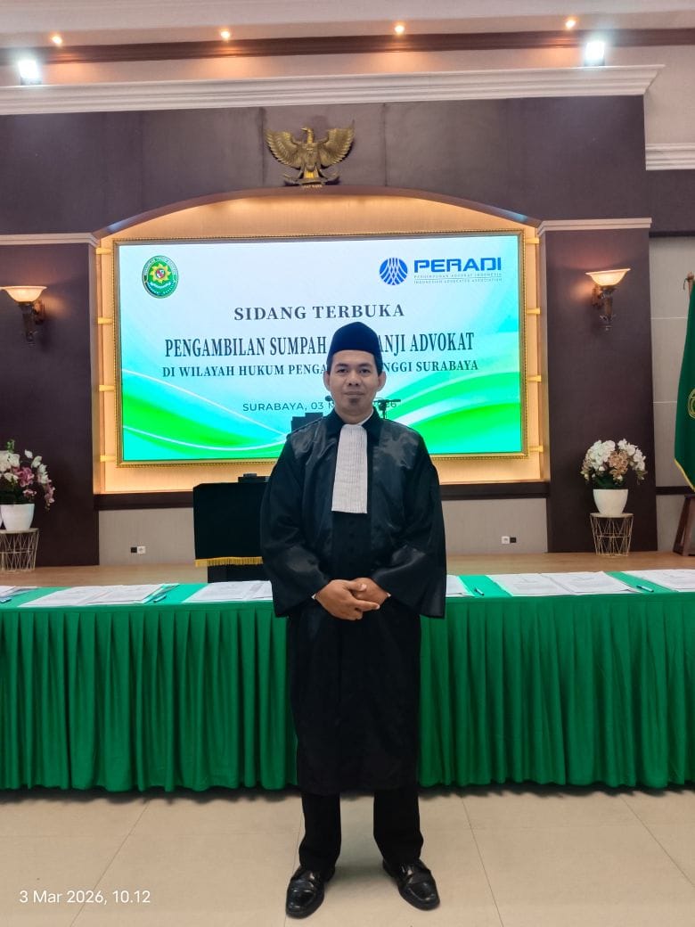 Informasi-Realita.Net,SURABAYA – Hermansya Rachmadtullah, S.H., kini resmi menyandang profesi sebagai advokat setelah dilantik dan diambil sumpahnya oleh Ketua Pengadilan Tinggi Surabaya, Sujatmiko, S.H., M.H., Selasa (3/3/2026). Prosesi sakral tersebut berlangsung di ruang sidang utama PT Surabaya, Jalan Sumatera, Kota Surabaya, Jawa Timur.