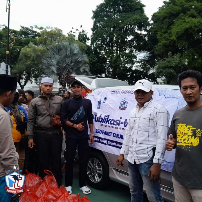 Surabaya l informasi-realita.net:Semangat berbagi di bulan suci Ramadan terus mengalir dari berbagai kalangan. Tak terkecuali media online Publikasiterkini.com yang menunjukkan kepedulian sosialnya dengan menggelar aksi bagi-bagi takjil gratis di kawasan bersejarah Kota Lama, tepatnya di depan Jembatan Merah Plaza (JMP), Surabaya.
