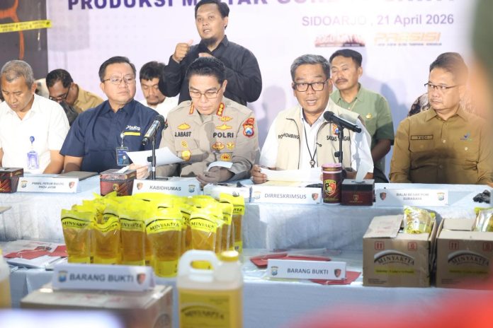 Informasi-Realita.Net,SURABAYA – Direktorat Reserse Kriminal Khusus (Ditreskrimsus) Polda Jatim mengungkap kasus tindak pidana produksi minyak goreng sawit merk MinyaKita ilegal yang tidak memenuhi standar mutu, label, dan takaran.