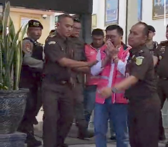 Informasi-Realita.Net,Magetan – Ketua DPRD Magetan Suratno tak kuasa menahan tangis saat digiring petugas Kejaksaan Negeri Magetan menuju kendaraan tahanan usai resmi ditetapkan sebagai tersangka dalam kasus dugaan korupsi dana pokok pikiran (pokir).